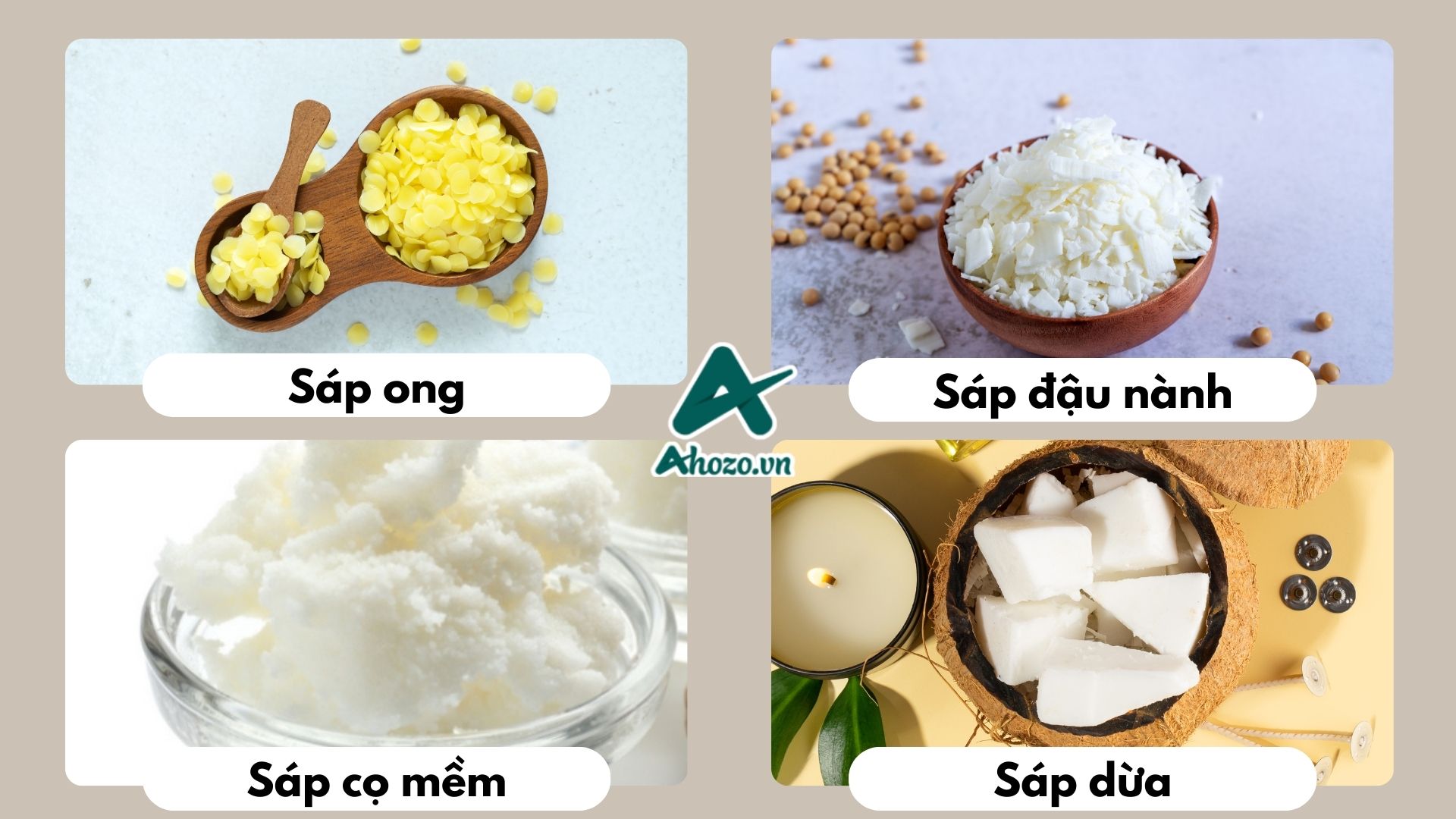 - Sáp đậu nành: Sáp đậu nành là loại sáp thuần thực vật, thân thiện với môi trường, cháy sạch và giữ hương cực kỳ tốt. Loại sáp này có mùi hương nhẹ nhàng, kết cấu mềm mại nên thường được sử dụng để trang trí cho cốc nến hoặc tạo hình chi tiết nhỏ.